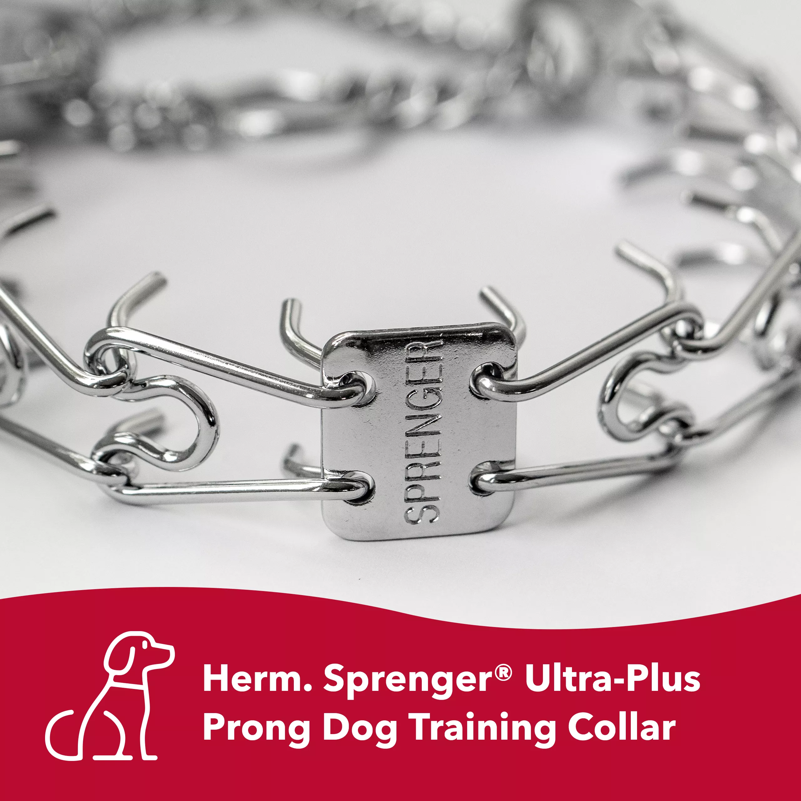 Discover the Herm. Sprenger® Ultra-Plus Prong Dog Training Collar – a safe, practical, and user-friendly solution for effective dog training. Engineered for ease of use and safety, this training collar boasts a solid fastener plate that ensures a secure connection when fastening it around your dog's neck. Not only does this make the process more convenient, but it also enhances safety during training sessions. Size adjustment is a breeze with this collar. Simply add or remove individual links to achieve the perfect fit for your dog, ensuring comfort and effectiveness during training exercises. The patented center plate construction and symmetrical prong placement provide natural contact points, facilitating optimal communication between you and your dog. This is essential for successful training outcomes. Herm. Sprenger® is renowned for offering a wide range of high-quality, specialty chain products, and the Ultra-Plus Prong Dog Training Collar is no exception. Elevate your training sessions with a collar that prioritizes safety, ease of use, and effective communication. Choose the Herm. Sprenger® Ultra-Plus Prong Dog Training Collar and unlock your dog's training potential.